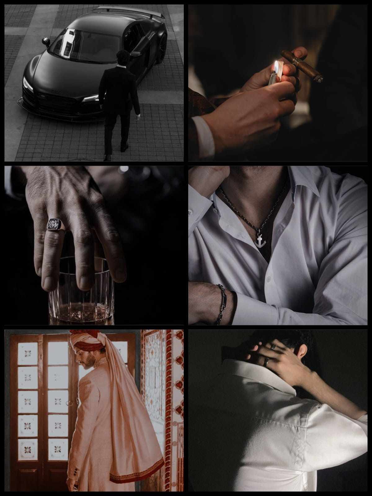 Rudra dresses in dark, clean clothesโwhite shirts, black coats, simple watches.